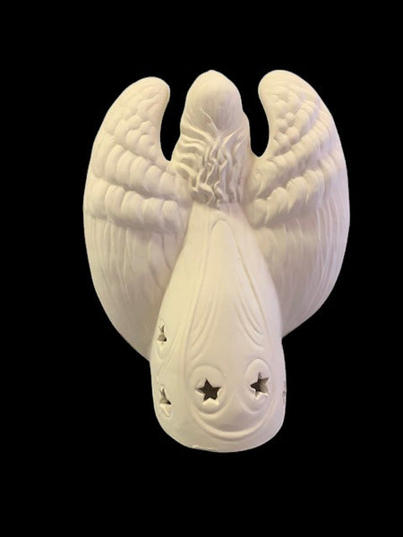 Ceramic Bisque Ready to Paint Fired to Cone 04, ready to paint with Acrylics or Glazing. Measures 9 1/4" tall, 7 1/4" width