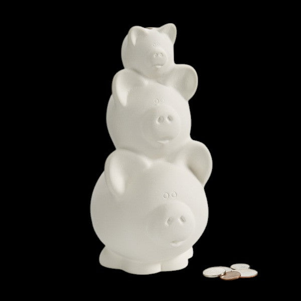 Our cute little pigs have piled up and we’ve made them into a bank! This bank makes it fun to save money and the three different pigs can be painted three different ways for a more enjoyable painting experience.